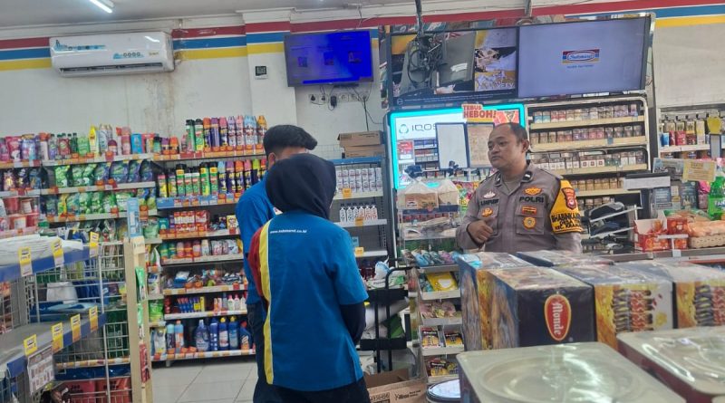 Serta mengecek situasi kamera cctv di waralaba alfamart di desa terate serta memberikan arahan kepada pegawai indomart agar waspada dan berhati hati ketika ada orang yang mencurigakan masuk ke waralaba untuk antisipasi pencurian.