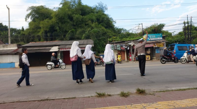 Seperti halnya Bripka Aldi anggota lalu lintas Polsek Kramatwatu Polresta Serkot Polda Banten melaksanakan pengaturan di jl.serang-cilegon tepatnya di depan SMPN 1 kramatwatu Kec.Kramatwatu,kamis (23/4/2026).