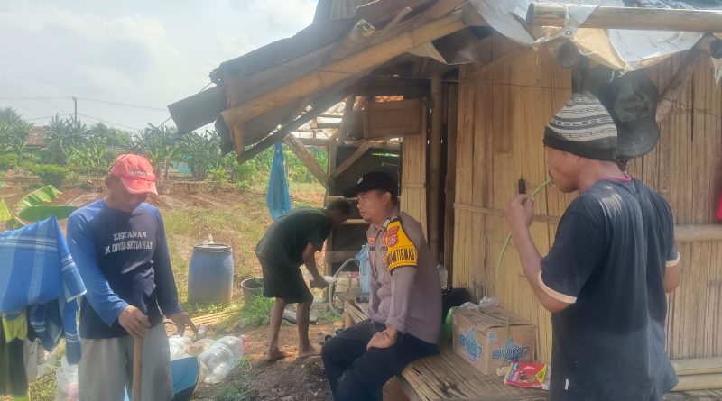 Bhabinkamtibmas Polsek Baros Polresta Serkot Hampiri Petani Sedang Istirahat Di Desa Sidamukti