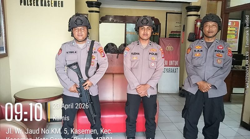 Personil Polsek Kasemen Polresta Serkot Melakukan upaya Pengamanan maksimal di polsek.