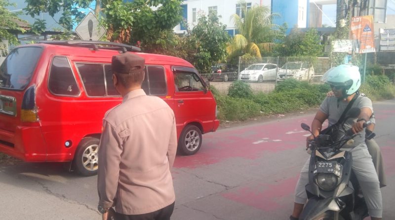 Anggota polsek kramatwatu Polresta Serkot melaksanakan pengaturan arus lalu lintas