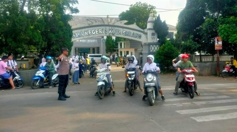 Kanit Lantas Polsek Taktakan Polresta Serkot Laksanakan Gatur Lalin di SMAN 3 Kota Serang
