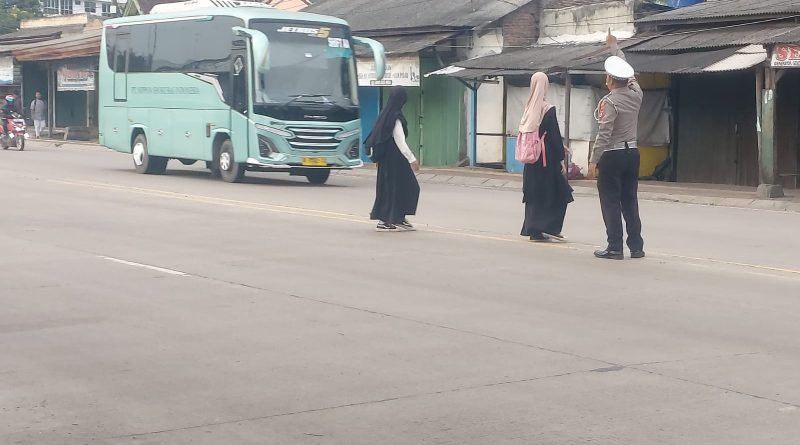 Seperti halnya Bripka Aldi anggota lalu lintas Polsek Kramatwatu Polresta Serkot Polda Banten melaksanakan pengaturan di jl.serang-cilegon tepatnya di depan SMPN 1 kramatwatu Kec.Kramatwatu,Rabu (29/4/2026).